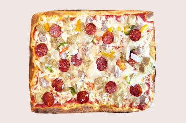 Maionese, mozzarella, salsiccia, pancetta, peperoni